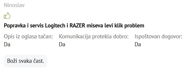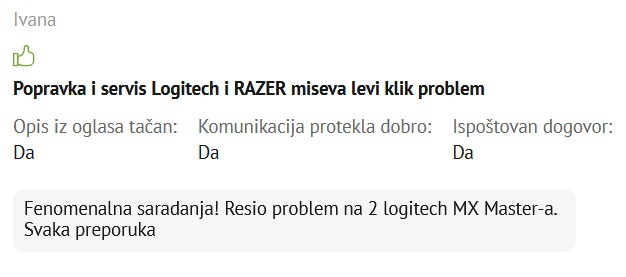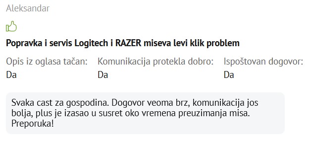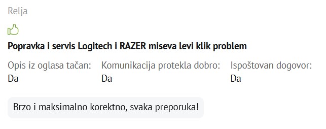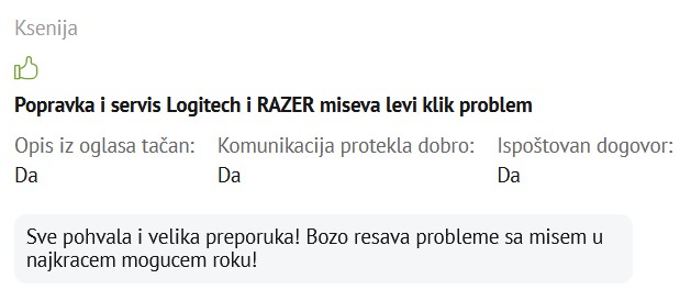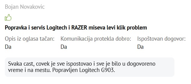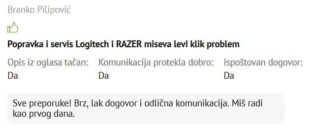 Popravke se završavaju u najkraćem mogućem roku. Trudimo se da vaš miš što pre bude ponovo u upotrebi kako bi nastavili da radite sa uređajem na koji ste navikli. Na raspolaganju je i opcija zamenskog miša dok traje popravka.