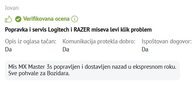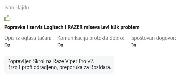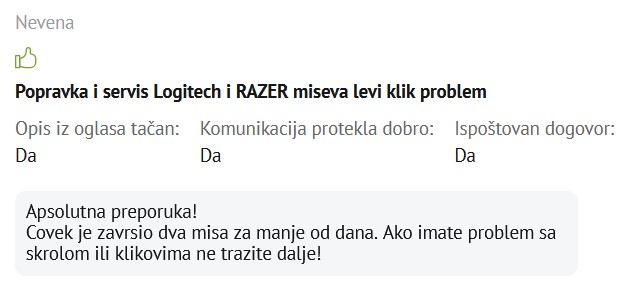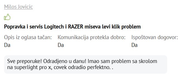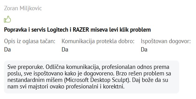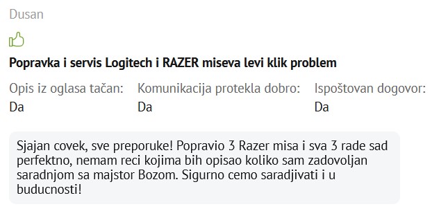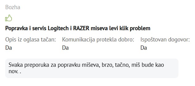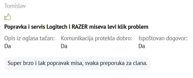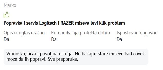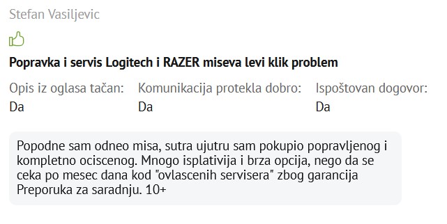 Sa više od 5 godina iskustva i preko 1.000 uspešno popravljenih miševa, jasno procenjujem da li se popravka isplati i šta je najbolje rešenje za vas – bez nagađanja i skrivenih troškova.